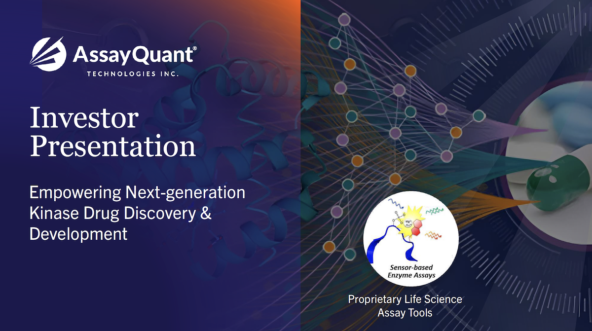 Despite the large ($1 billion+ market size) and high amount of activity in the kinase inhibitor space (as demonstrated by large IPO’s or Series A/B/C’s, increasing approvals by the FDA and other agencies, and several market reports forecasting inhibitor sales to be ~$160 billion by 2032), there has been very little innovation with kinase assay technologies in the last 20 years. The PhosphoSens platform from AssayQuant incorporates innovative technology out of MIT (invented by a co-founder) that provide a simple and powerful approach that is enabling improved drugs to be created faster and at reduced cost.