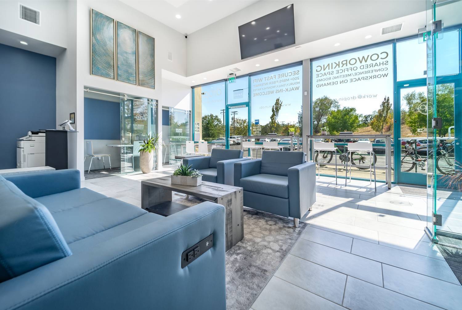 This is exactly why we designed and launched a network of dropin® goworking workspaces. dropin® is your third space between the home and office, conveniently located in your neighborhood in street-level retail centers, next to great coffee, food, and other lifestyle amenities so you can be productive and get your best work done.