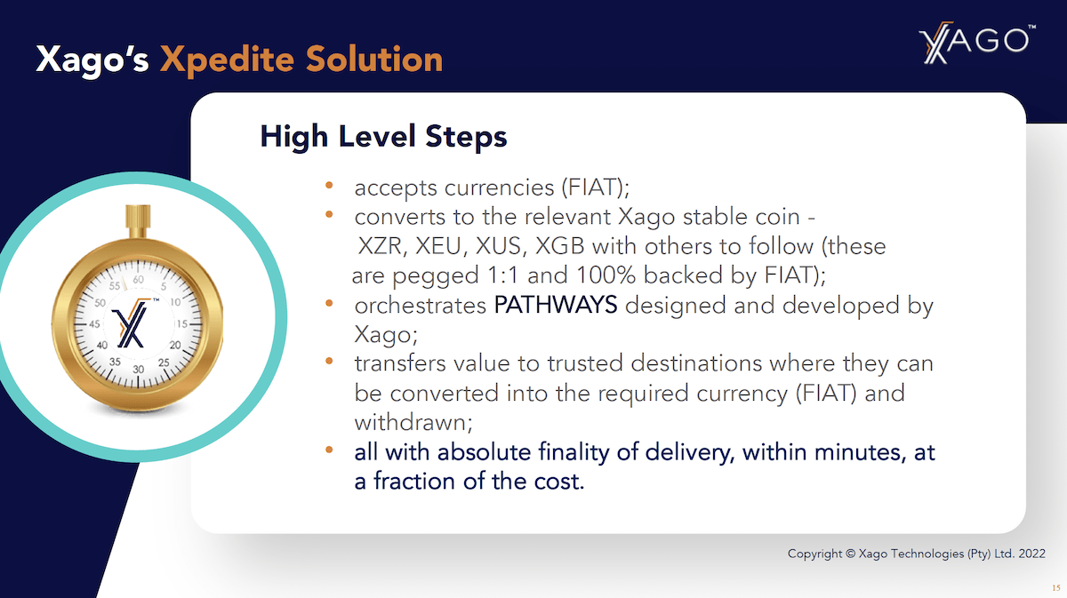 Xago moves FIAT to FIAT, quickly, with reduced costs with certainty using the power of crypto!